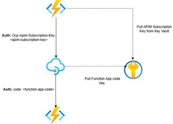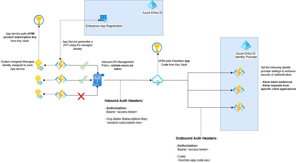 - Function app code (pulled from Key Vault using APIM’s Managed Identity)