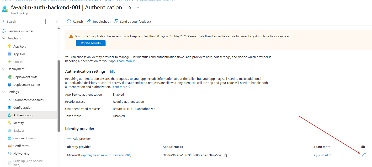 - Backend Function App authorization